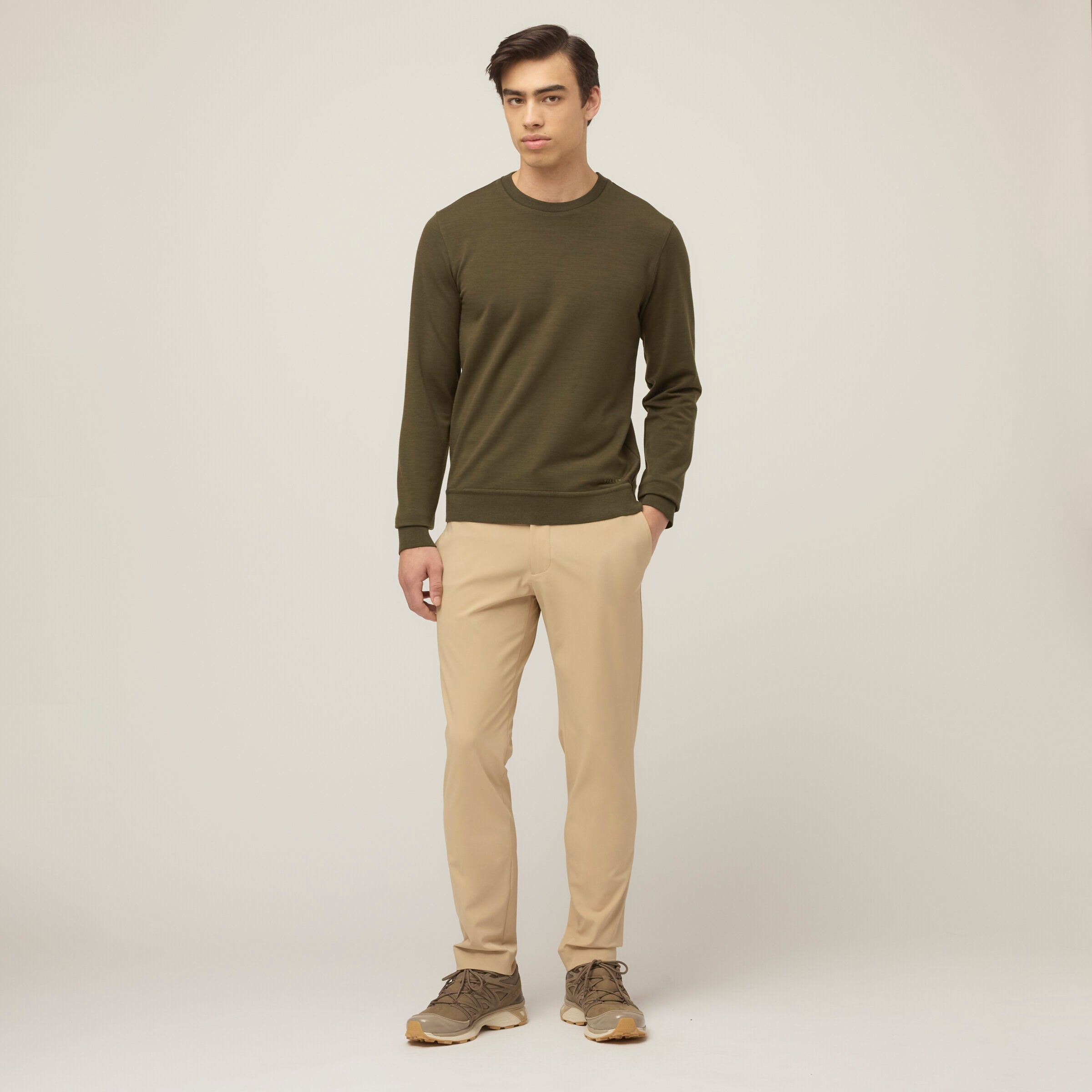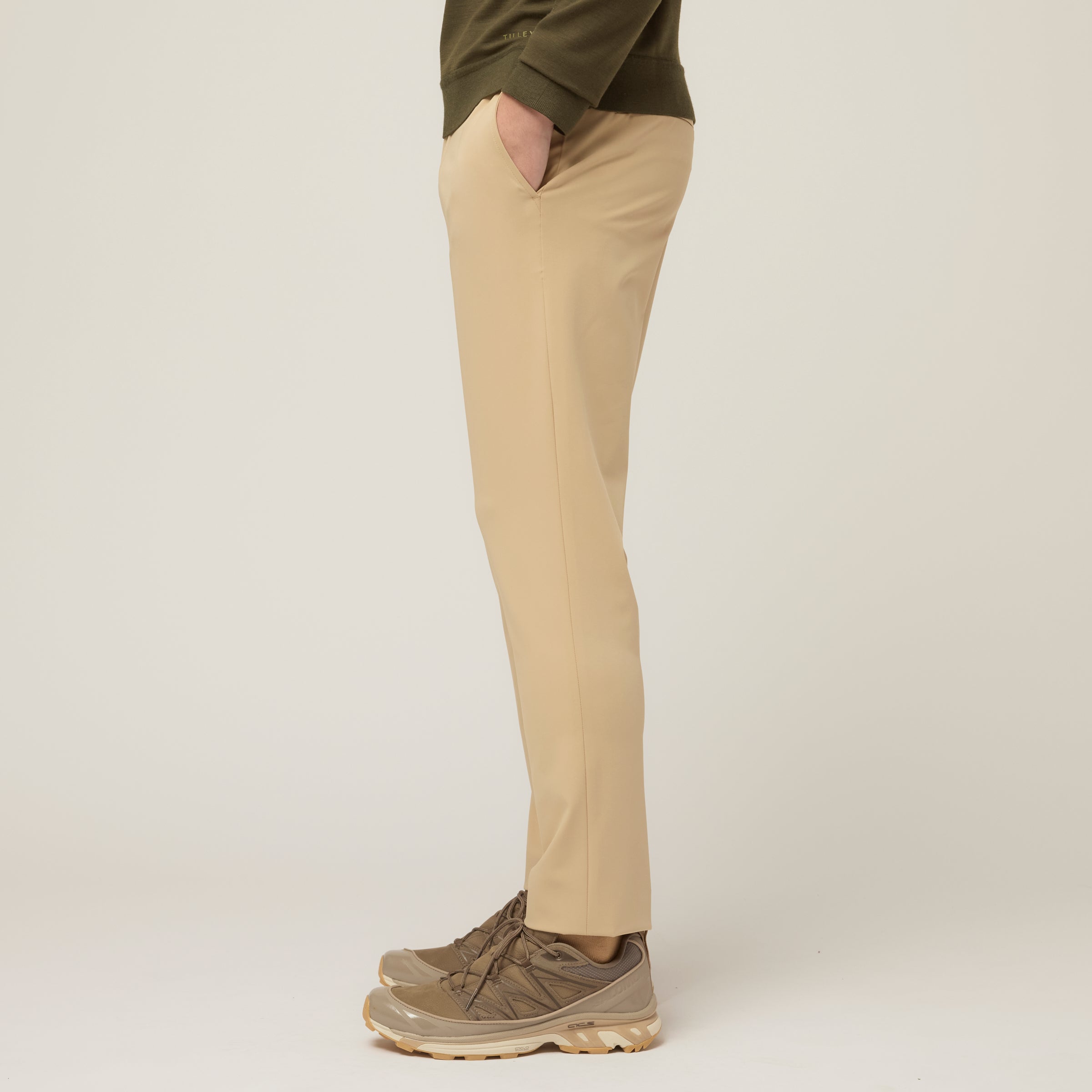 Our bi-stretch twill is exclusively woven and designed in Italy to achieve exceptional durability, unrestricted movement, wrinkle resistance (even after packing) and all-day comfort.