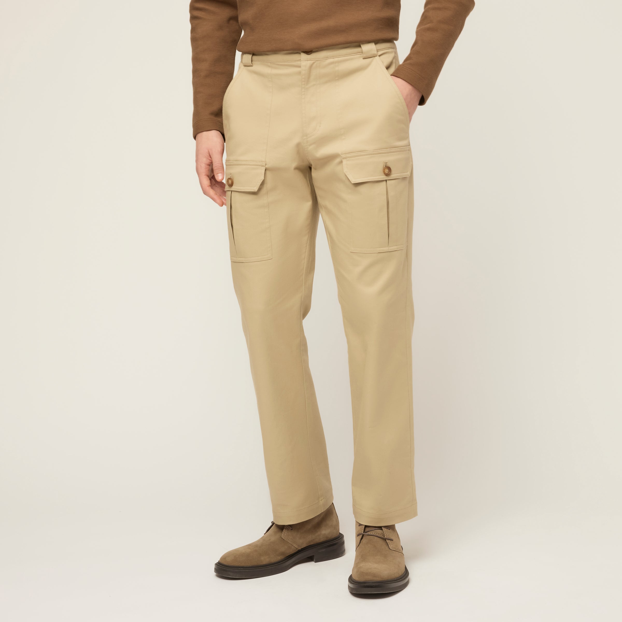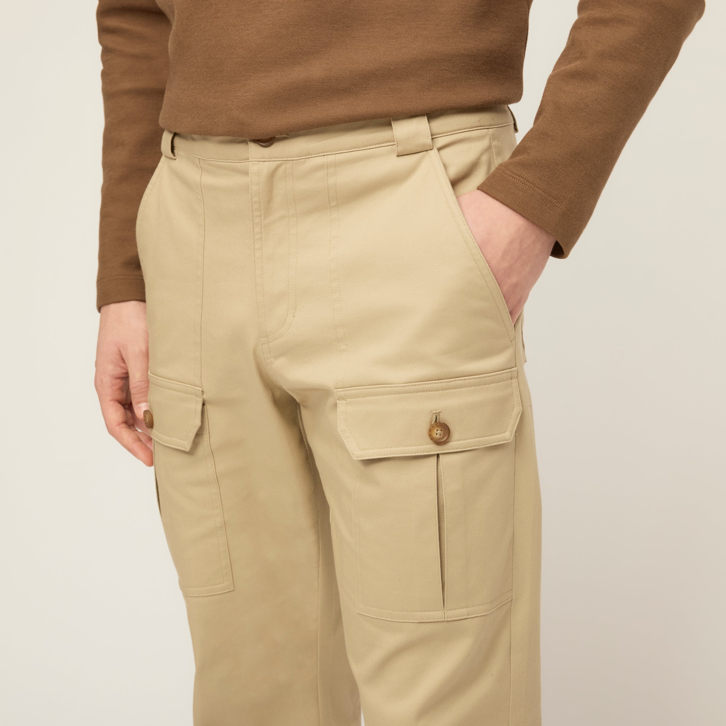 For full days that call for even fuller pockets. Cut from rugged Safari Cotton, it is built to take scuffs and wear in stride, with the comfort of a Japanese fabric that brings 2-way stretch, natural fibres, and a soft touch. Front slash pockets, button-flap cargo pockets with mesh pocket bags, and back flap pockets handle the carry, while elastic waist sides, wide belt loops, a tool holster, and a D-ring round out the build for days when you want more on you and less in your hands.