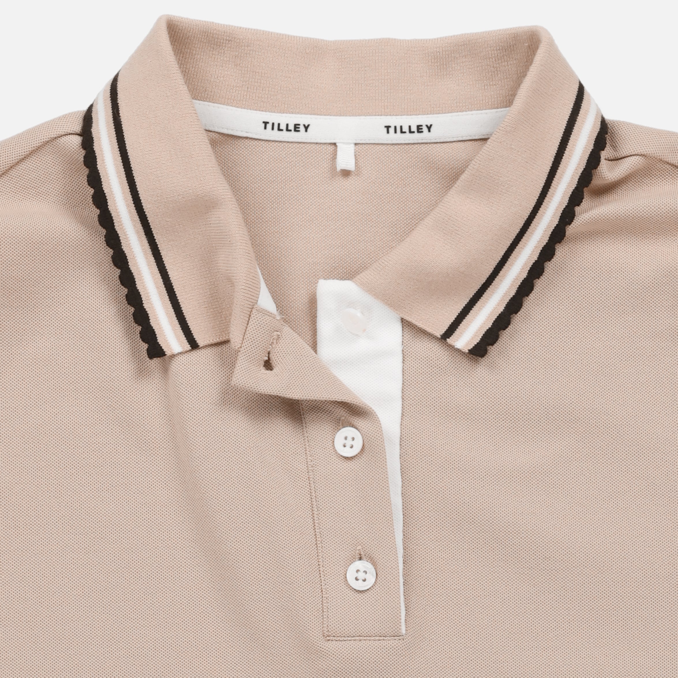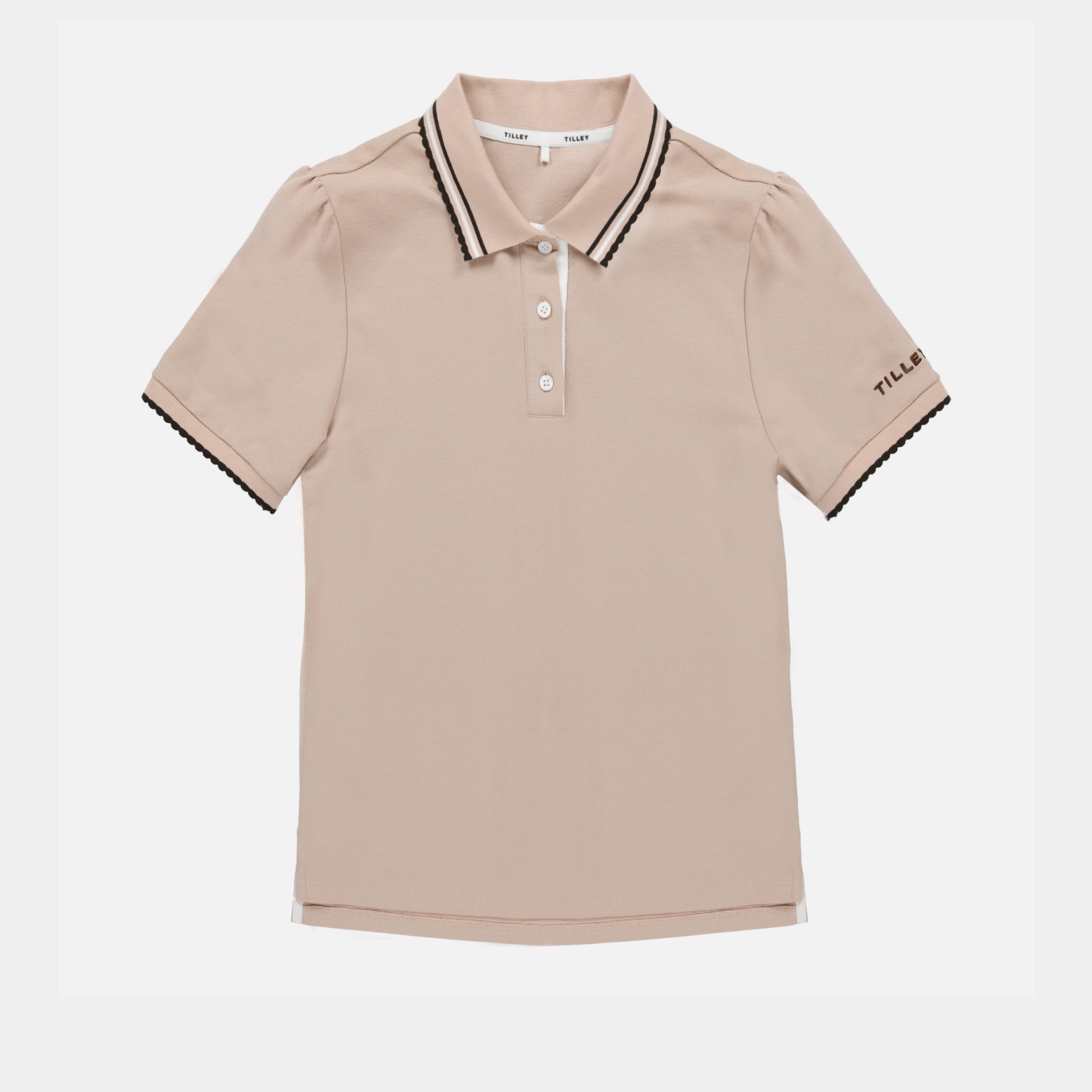 A fresh, feminine take on classic court polish. The Preppy Pique Puff Sleeve Polo is made from breathable stretch piqué with a smooth, elevated feel that keeps you comfortable through every rally, round, or warm day out. Soft puff sleeves bring subtle volume, while scalloped contrast tipping and a sharp contrast placket add that unmistakable preppy character. Finished with a Tilley sleeve embroidery, it’s lightweight, flattering, and designed to move with ease. A confident, easygoing polo that feels just as good in play as it does in all your everyday moments.