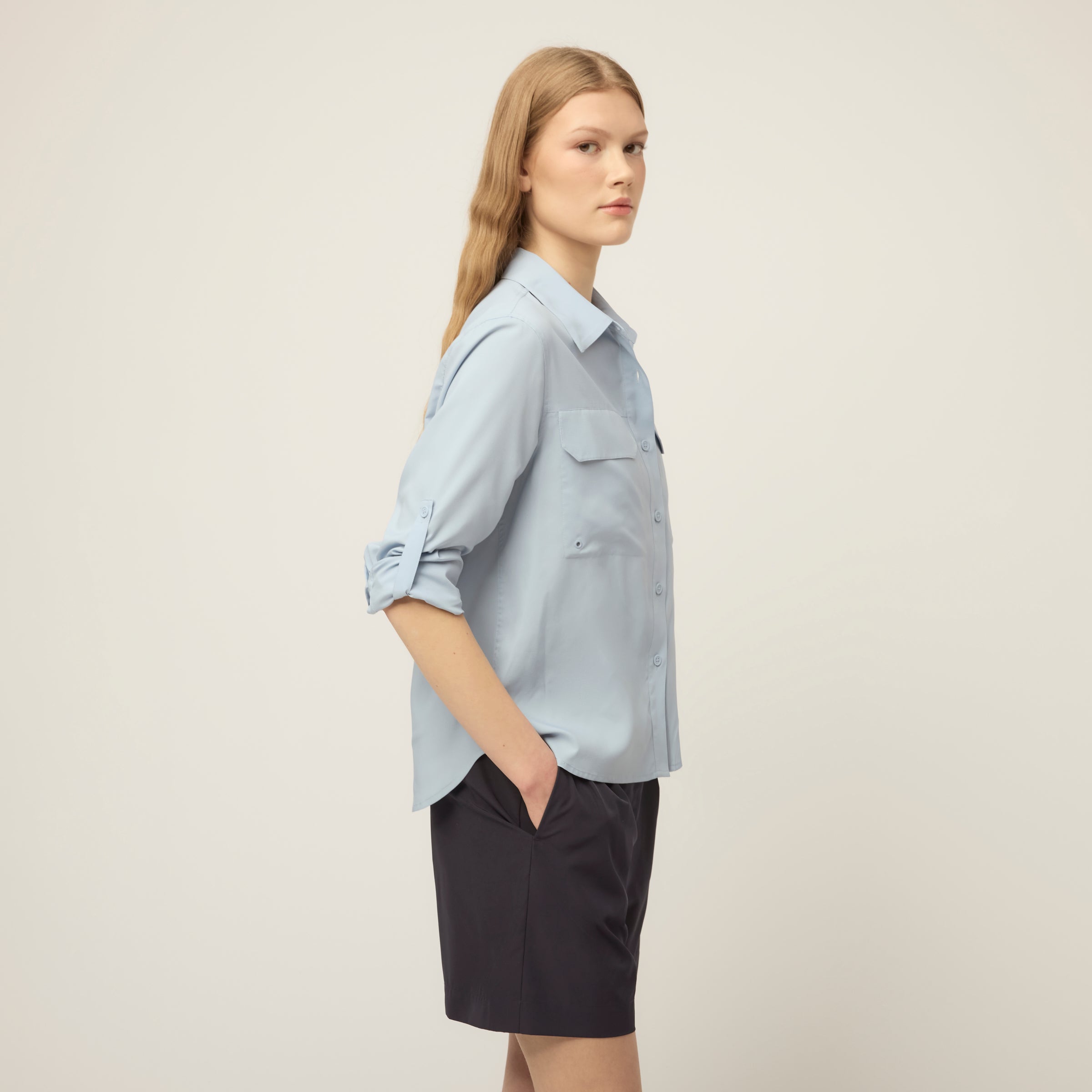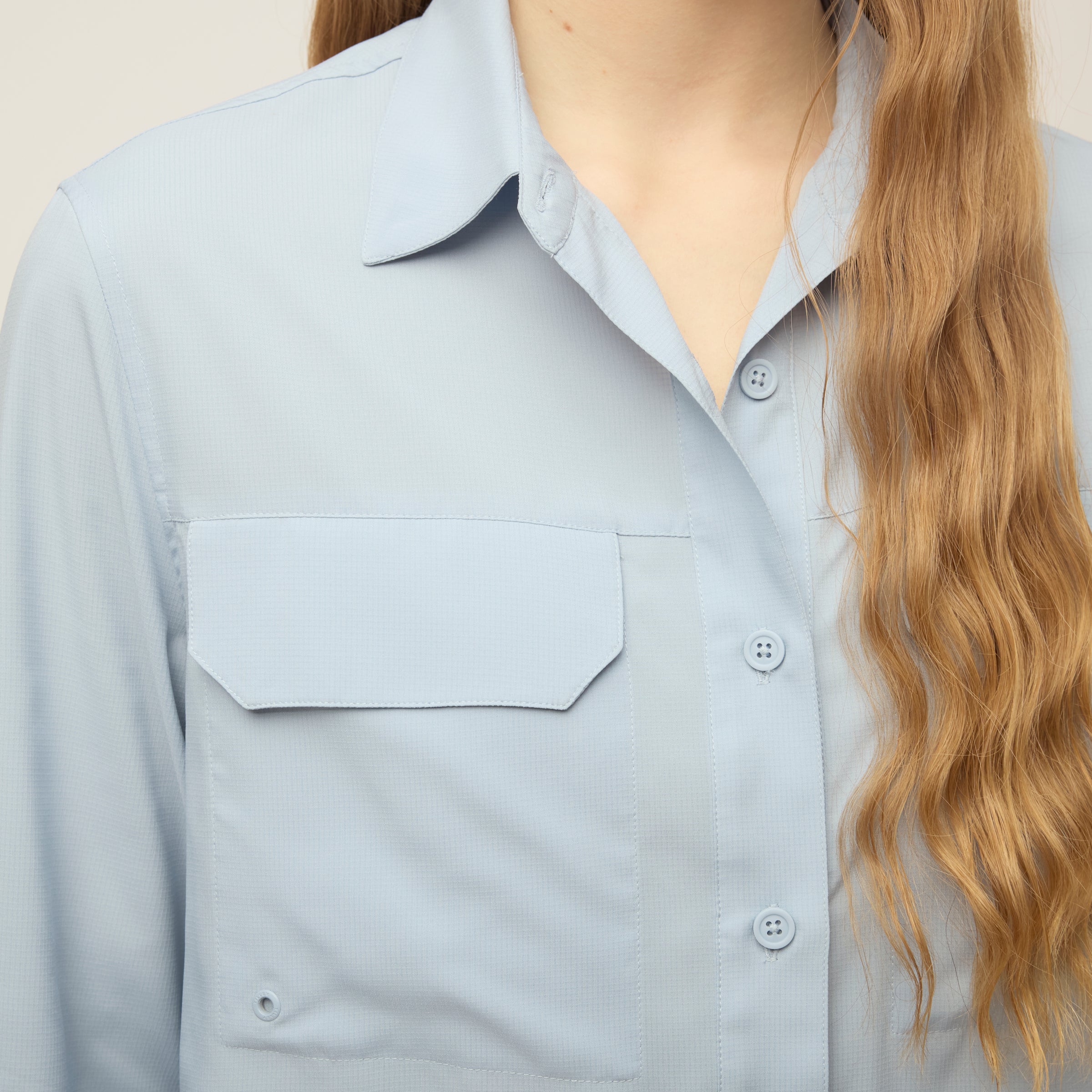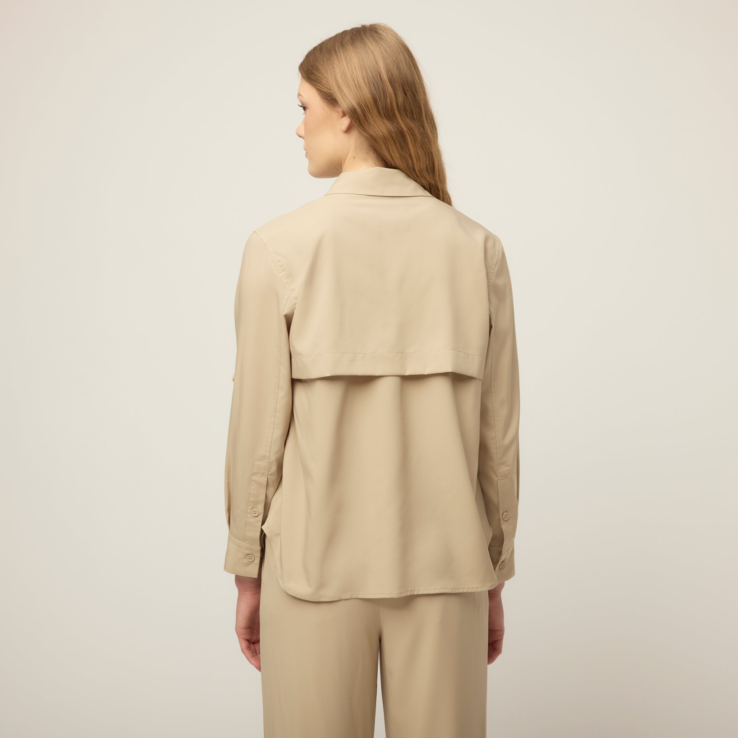Built for heat, with coverage already taken care of. The Quick Dry UPF Safari Shirt is cut from lightweight UPF Ripstop to provide UPF 50+ protection, quick-dry comfort, and breathability. Designed with a mesh panel along the back yoke for ventilation, it has buttons at the elbows to hold rolled cuffs neatly in place. Front chest pockets with flaps add storage up front, while the oversized long sleeve fit and dropped shoulder keep the shape easy and relaxed.