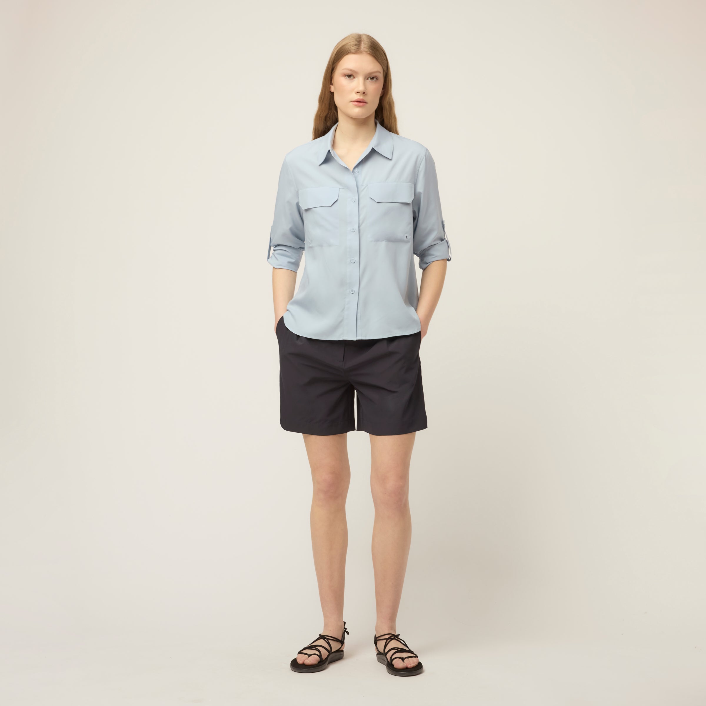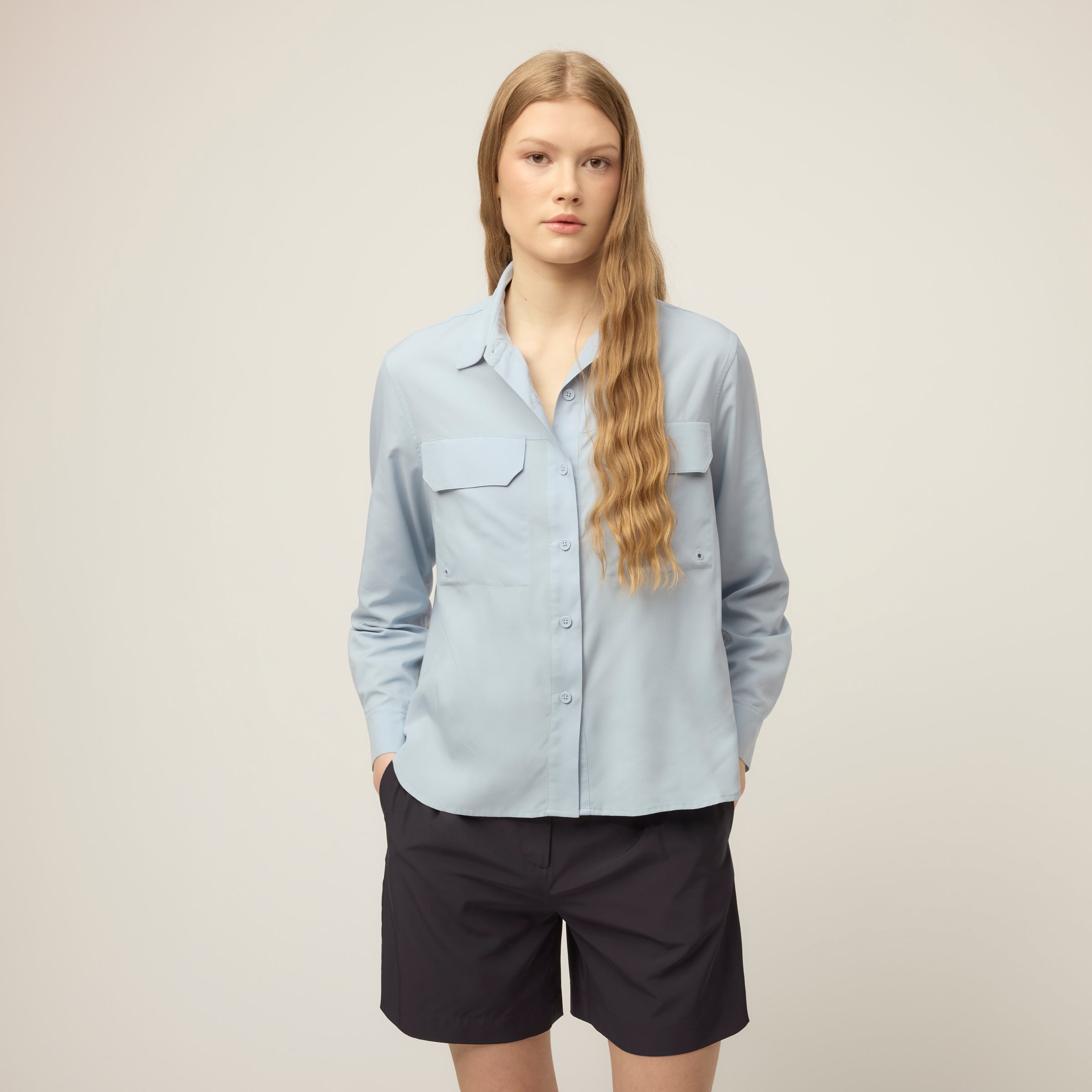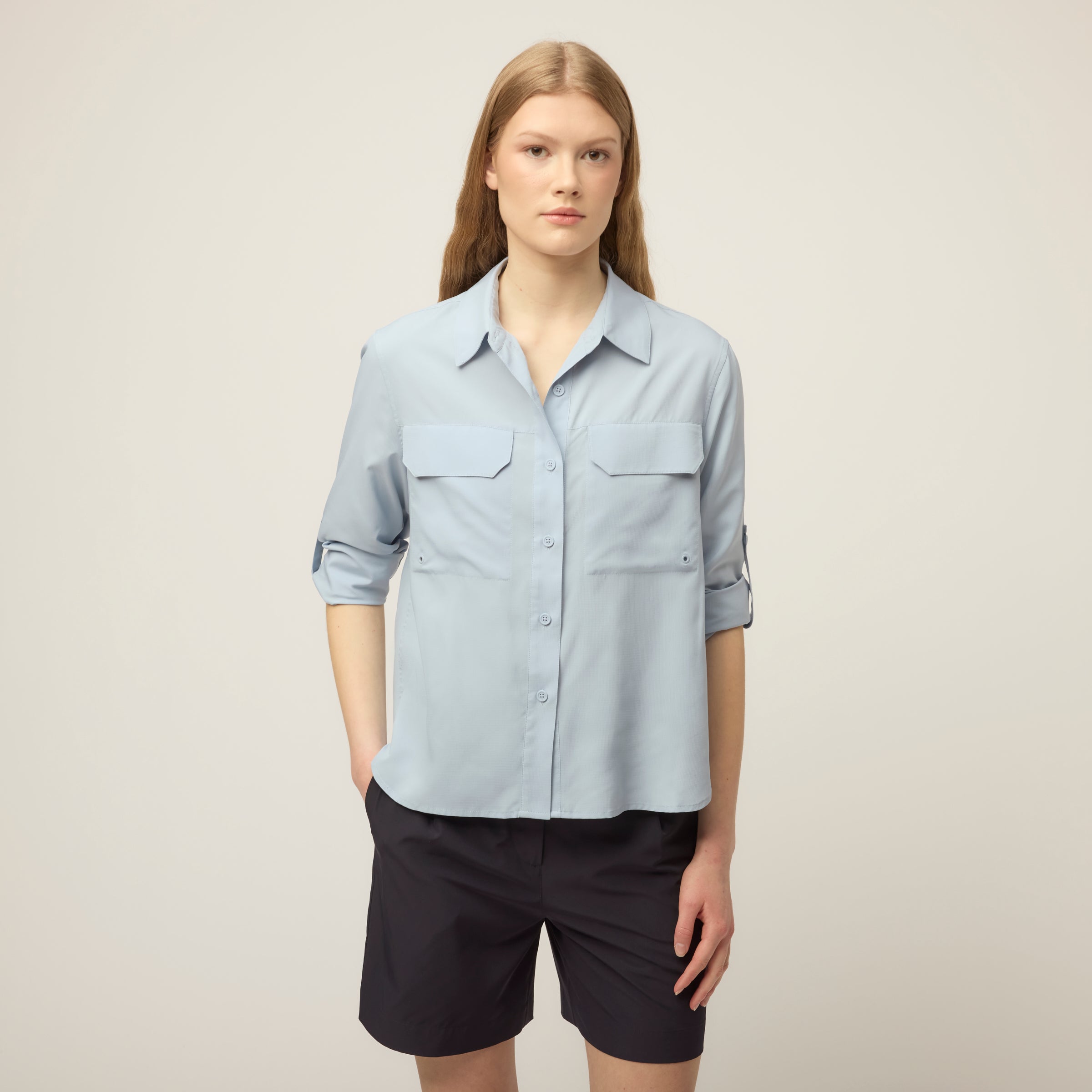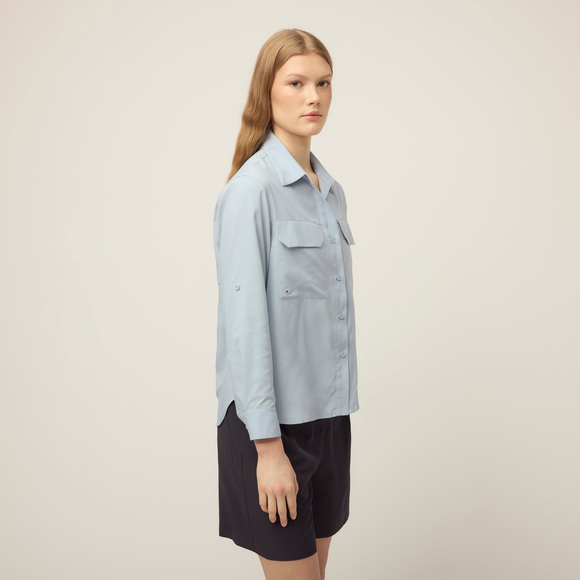 Built for heat, with coverage already taken care of. The Quick Dry UPF Safari Shirt is cut from lightweight UPF Ripstop to provide UPF 50+ protection, quick-dry comfort, and breathability. Designed with a mesh panel along the back yoke for ventilation, it has buttons at the elbows to hold rolled cuffs neatly in place. Front chest pockets with flaps add storage up front, while the oversized long sleeve fit and dropped shoulder keep the shape easy and relaxed.